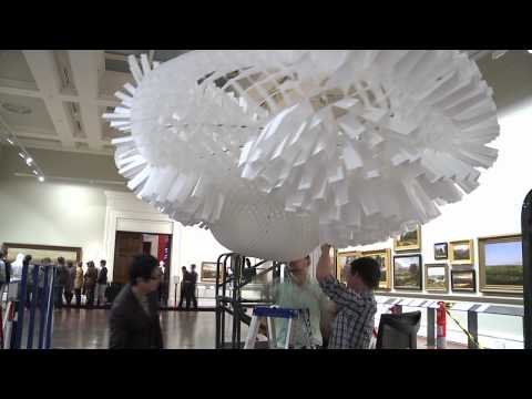 A time lapse video: watch as artist Trinh Vu installs her work Blue Skies in the State Library of Victoria.
